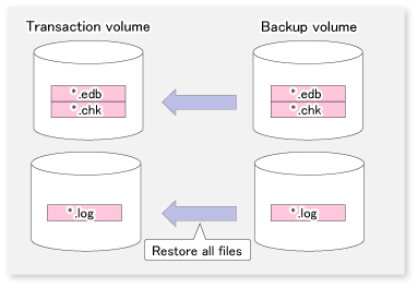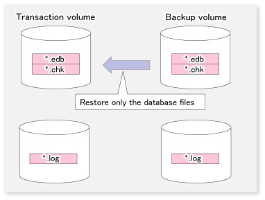 Only database files (with extension *.edb) are restored.