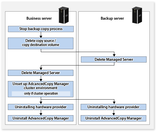Refer to "Uninstalling ETERNUS SF Manager" and "Uninstalling AdvancedCopy Manager's Agent" in the Installation and Setup Guide to delete AdvancedCopy Manager.