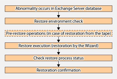 This sub section explains the necessary operating procedures for restoration using the Restore Wizard for Exchange Server.