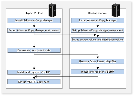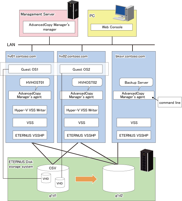 The examples of command execution given in this section presume an environment as shown in below figure.