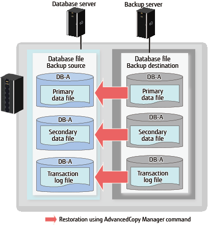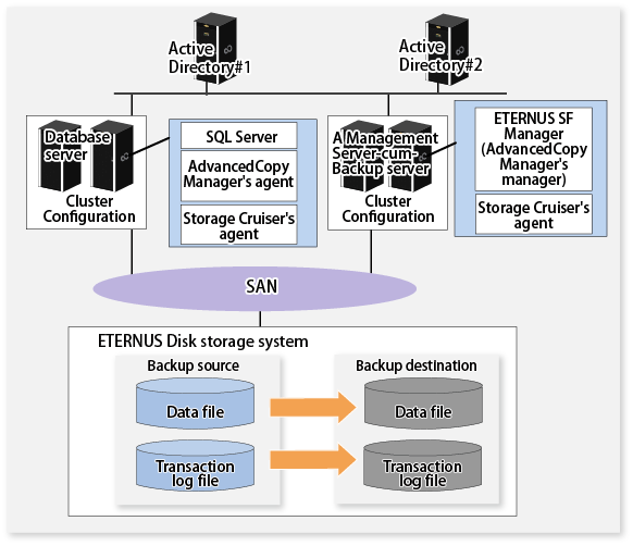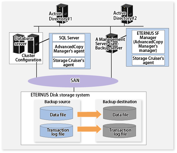 Management Server | The Management Server for performing an online backup of the database of SQL Server. The Management Server manages the Managed Server (Database server and Backup server). Only 1 unit is installed within the system. | Required | ETERNUS SF Manager(AdvancedCopy Manager's manager) |