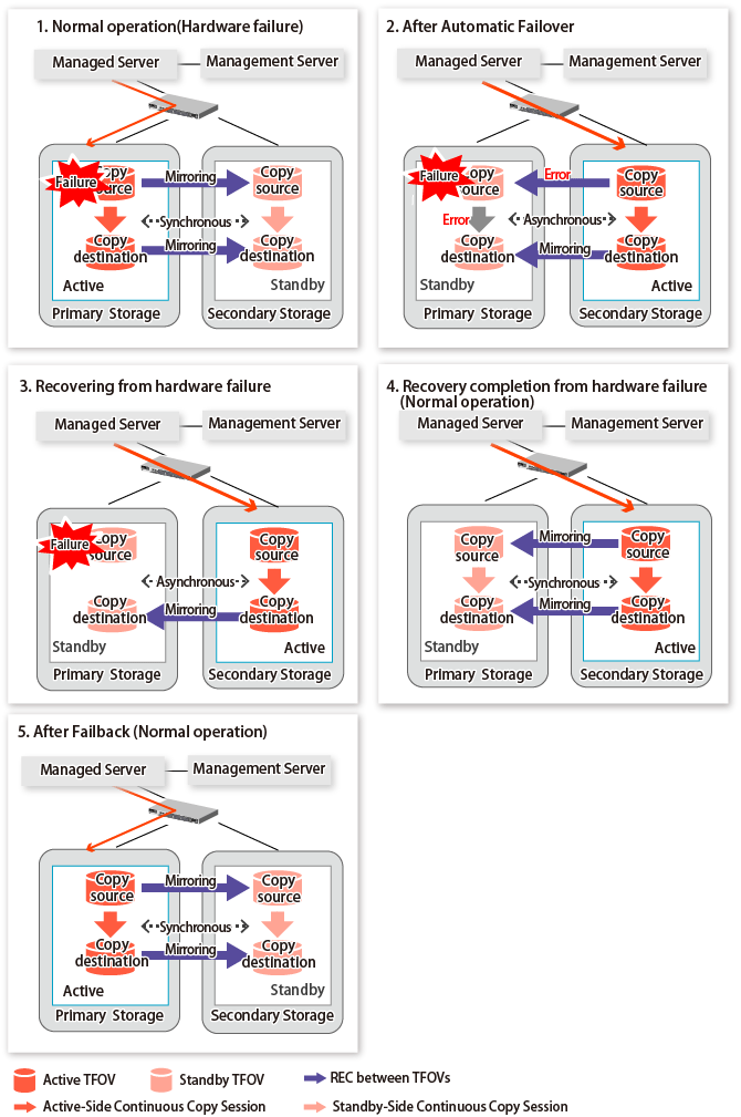Figure 12.15 When Automatic Failover Is Performed Due to Hardware Failure Occurring on Primary Storage Where TFO Status Is "Active"