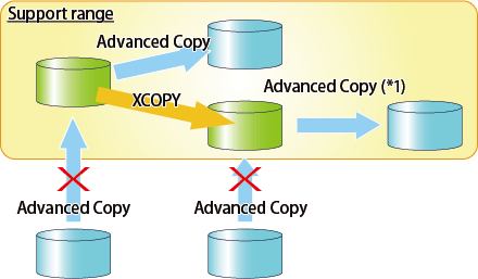 *1: In the following ETERNUS Disk storage systems whose firmware version number is earlier than V10L50, Advanced Copy cannot be performed by AdvancedCopy Manager with respect to the volume on which XCOPY session is running.