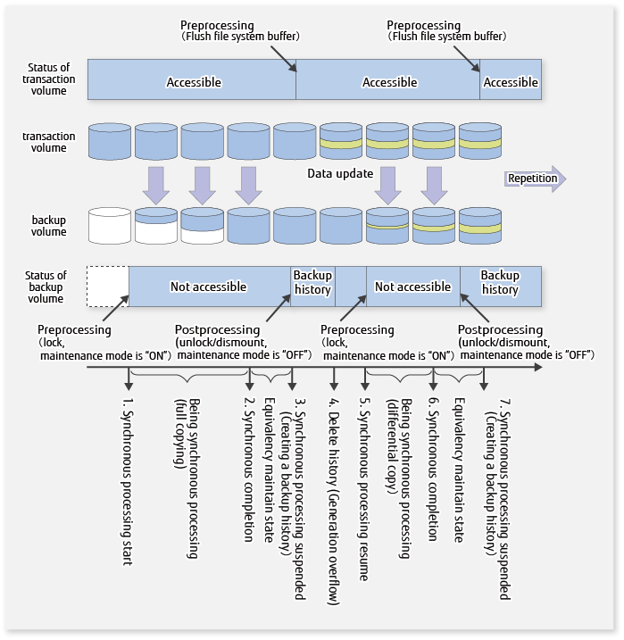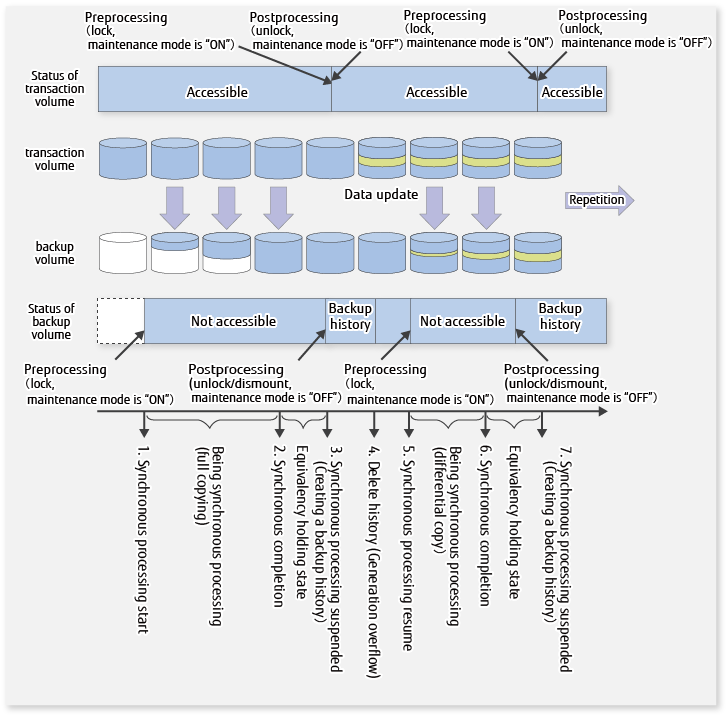 Figure A.2 Processing in Synchronous-type Backup Operation (Locking Transaction Volume)