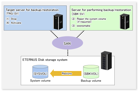 The replication function is used to restore a system volume.
