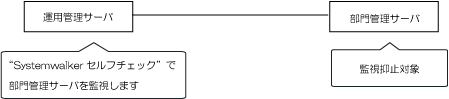 「Systemwalkerセルフチェック」スクリプトにより運用管理サーバから部門管理サーバを監視しています。部門管理サーバが監視抑止され、監視抑止が解除された場合に、運用管理サーバにおいて、本コマンドを実行し、「Systemwalkerセルフチェック」をリセットします。