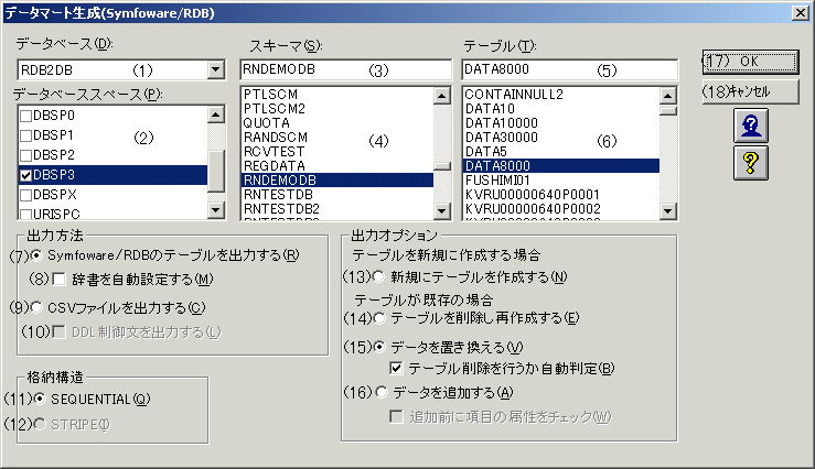 (7) | Symfoware/RDBのテーブルを出力する | データをテーブルに直接出力する場合に選択します。 |