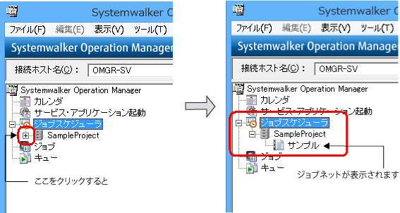 プロジェクトを展開すると、登録されているジョブネットが表示されます。