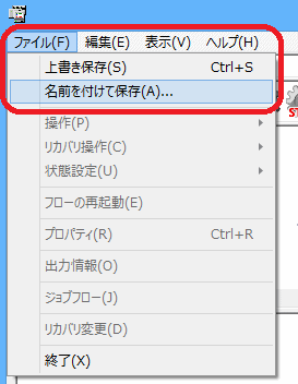 [ジョブネットの新規作成]ウィンドウの[ファイル]メニューから[名前をつけて保存]を選択します。