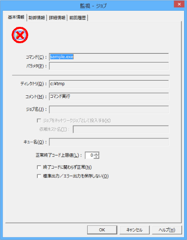 “sample.exe”ジョブのアイコンをダブルクリックすると、[監視-ジョブ]ウィンドウが表示されます。