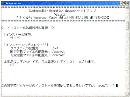 Systemwalker Operation Managerのインストールコマンドを実行します。以下に例を示します。