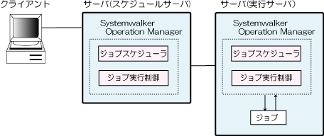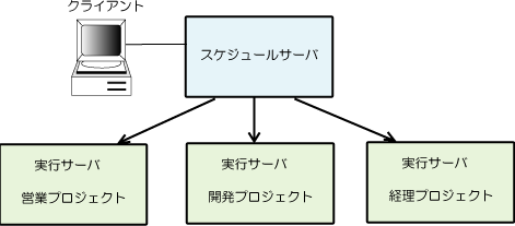 ジョブのスケジュールと実行を別々のサーバで運用する形態を、下図に示します。
