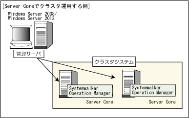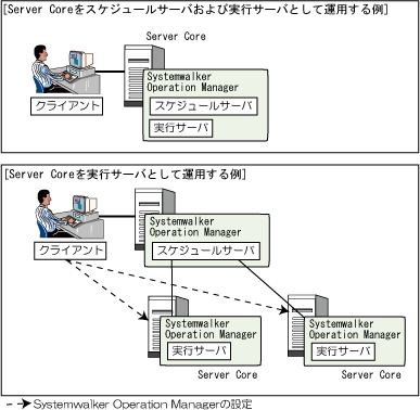 Server Core環境のSystemwalker Operation Managerの設定や、GUIからの操作を行う場合、別途、Systemwalker Operation Managerクライアントが動作するWindowsコンピュータを配置してください。