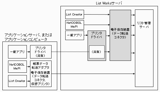 なお、アプリケーションコンピュータやアプリケーションサーバで一般アプリ帳票を登録または印刷する場合、List Worksサーバのデータ転送コネクタが使用されるため環境設定が必要になります。