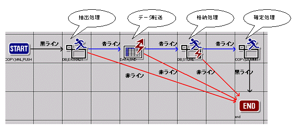 黒ライン:正常・異常系ルート(イベントが正常または異常終了した場合に走行するルート)