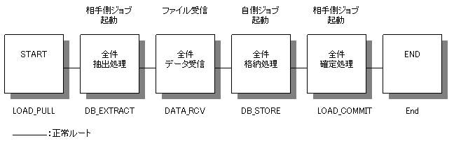 全複写業務は、全件抽出処理が正常に完了した以降の処理(データ送信またはデータ受信、格納処理、確定処理を含む)で異常になった場合には、確定処理を実行する構成となります。