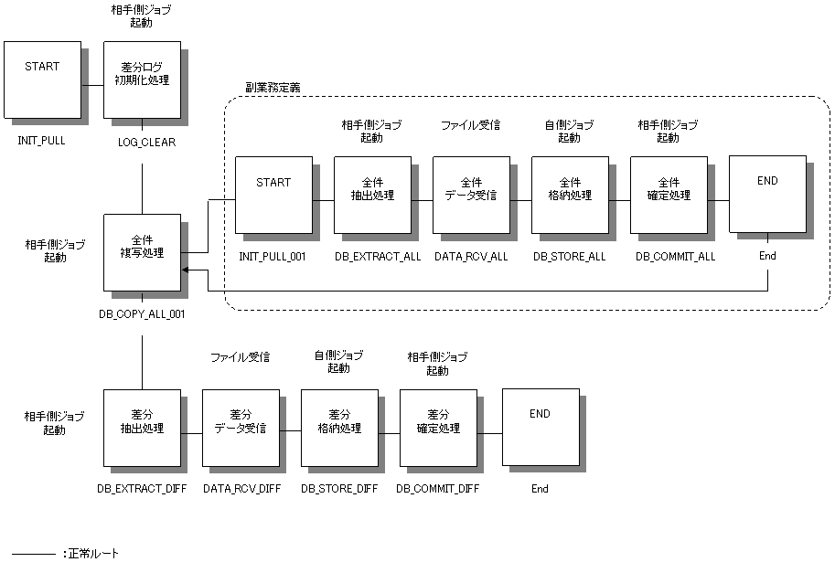 業務の内容 | 複写元データベースの差分だけのデータを複写先データベースに押出し型業務で一括差分複写する場合に使用します。 |