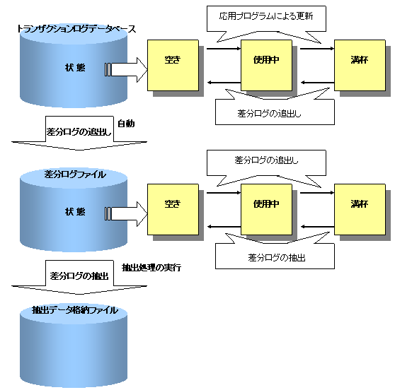 ここでは、これらのログファイルの監視手段と容量不足の防止方法について説明します。あわせて、差分ログファイルへの書出し処理で異常が発生した場合の対処方法について説明します。