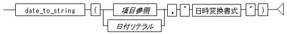 date_to_string関数は、項目参照の値または日付リテラルを日付型とみなし、指定されたフォーマットで文字列を返却します。指定するデータは、標準日付形式である必要があります。