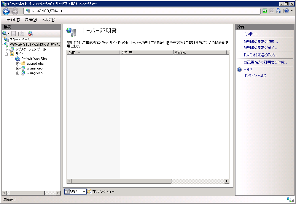 SSLでの通信を行うためにIISにサーバ証明書をインストールします。