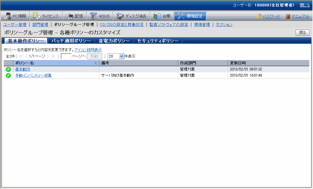 [各種ポリシーのカスタマイズ]ボタンをクリックします。