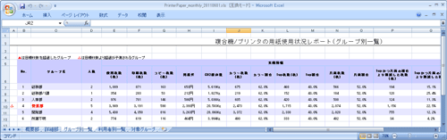 グループ別一覧 | 集計対象月に対し、使用枚数や目標に対する達成度をグループ別に出力します。 |