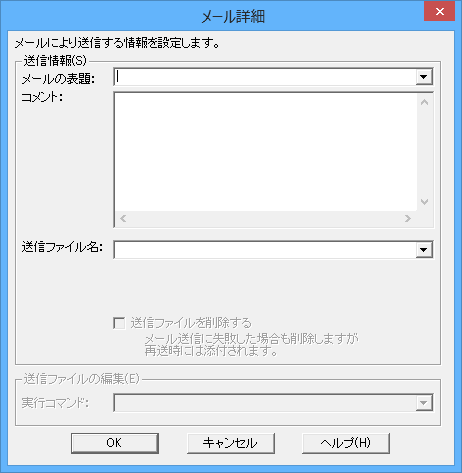 メールで送信する情報を設定します。ボタンをクリックすると、[メール詳細]ダイアログボックスが表示されます。
