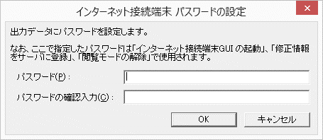 入力するパスワードは、[ソフトウェア修正管理]画面でインターネット接続端末用に情報を出力した際に指定したパスワードと同じものです。