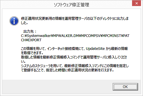 ここで出力された修正一覧ファイルは、全未適用修正のダウンロードに使用します。