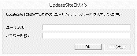 [ソフトウェア修正管理 - インターネット接続端末]画面を起動した後、UpdateSite認証を行っていない場合は、UpdateSite認証のため、ユーザID、パスワードを設定する必要があります。