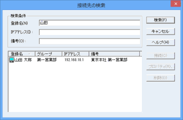 指定された登録名やIPアドレスを元に、登録されている全ての接続先を検索します。