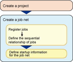 A project is a collection of different work units, and contains one or more job nets. It is the smallest unit for specifying job monitoring, making it easier to manage tasks when grouped according to type. Also, you can set access rights for projects.