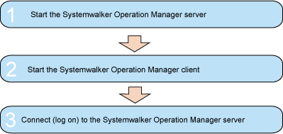 When the Systemwalker Operation Manager server has started, start the Systemwalker Operation Manager client so that the Systemwalker Operation Manager functions can be used from the client.