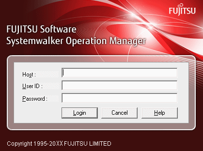 If connecting to the Systemwalker Operation Manager server on the host where you have logged on, you can leave the host name field blank. Specify a user ID and password, and click the Login button.