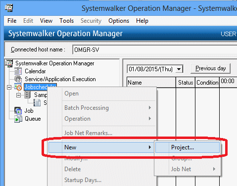 Expand "Jobscheduler" and confirm that the "PRJ" project has been registered under Jobscheduler.