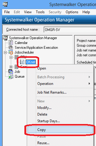 Select the "OKnet" job net (which is the copy source), right-click and select Copy.