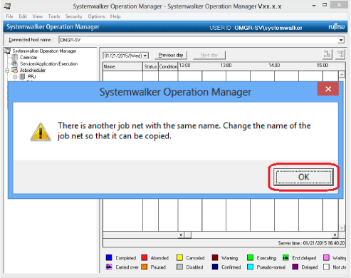 A message prompting to change the job net is displayed. Click OK.