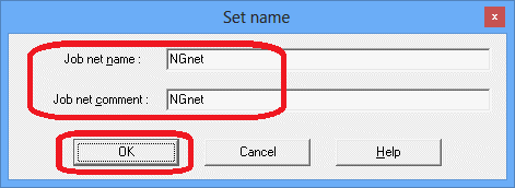 The Set name window will be displayed. Change Job net name and Job net comment to "NGnet" and click OK.