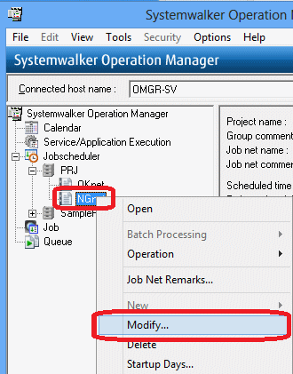 Select the "NGnet" job net, right-click and select Modify.