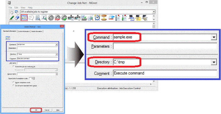 Register the additional job "sample.exe".