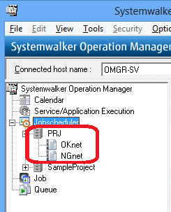 The procedure is the same as that for registering the "OKnet" job net up to the step for registering the "sample.bat" job. Therefore, create the "NGnet" job net by copying the "OKnet" job net and then registering the "sample.exe" job.