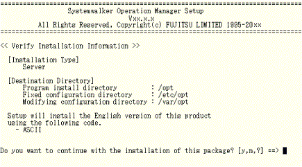 Execute the Systemwalker Operation Manager installation command. An example is shown below.