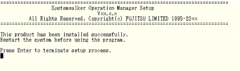 If installation ends normally, a window similar to the one below will be displayed. Press Enter to end installation.