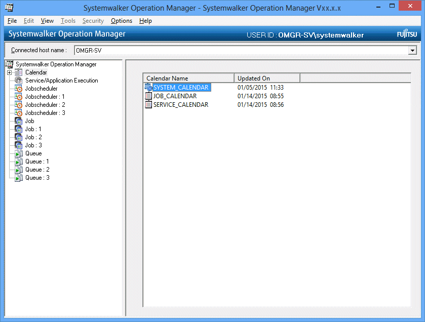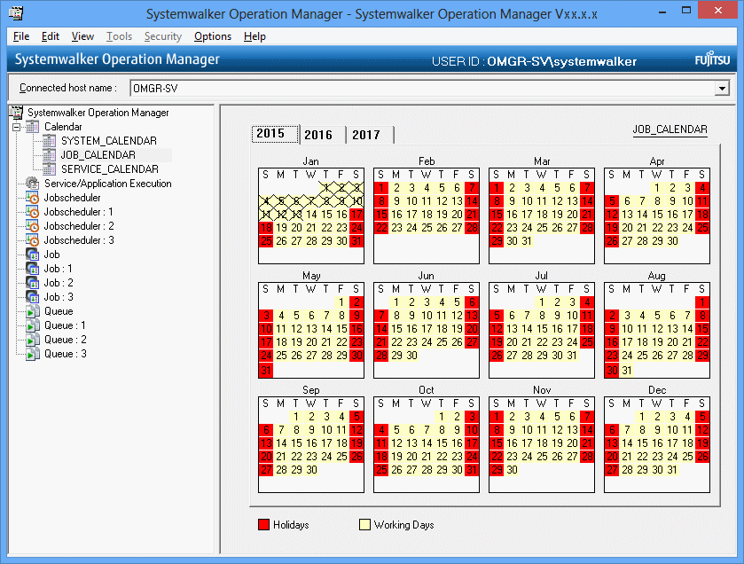 Select a calendar from Calendar in the Job Selection window of the Systemwalker Operation Manager window.