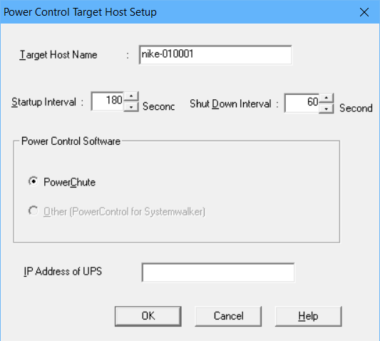 Specifies the IP address of the UPS connected to the control target host specified in Target Host Name.