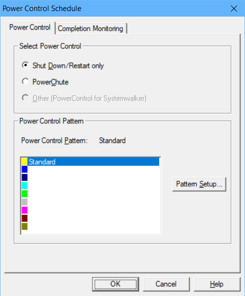 Displays the Power Control Pattern dialog box for the pattern selected from the Power Control Pattern list. The Power Control Pattern is classified into the following two types. The power on/off and rebooting times of the system can be defined for each.