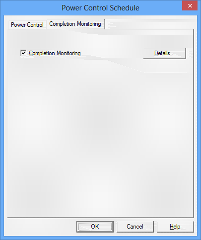 Check the Completion Monitoring check box in the Completion Monitoring sheet of the Power Control Schedule dialog box, then click the Details button. In the Completion Monitoring dialog box, define the shutdown monitoring options.