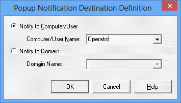 Setting the Popup Notification Destination Definition List dialog box /Popup Notification Destination Definition dialog box