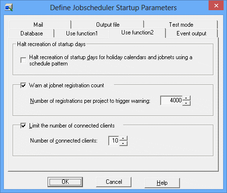 Figure 4.6 Define Jobscheduler Startup Parameters window - Use function2 Sheet