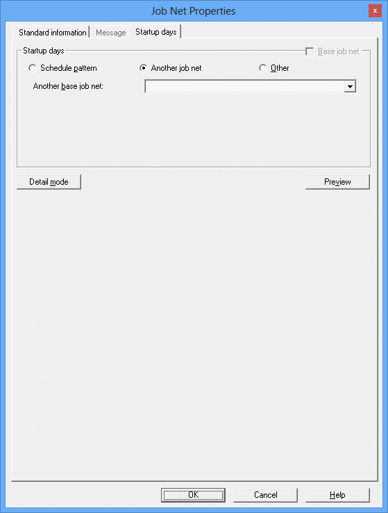 Select Another job net to reuse the schedule that was set for another job net. If Another job net is selected, the Startup days sheet for specifying startup days based on another schedule will be displayed.